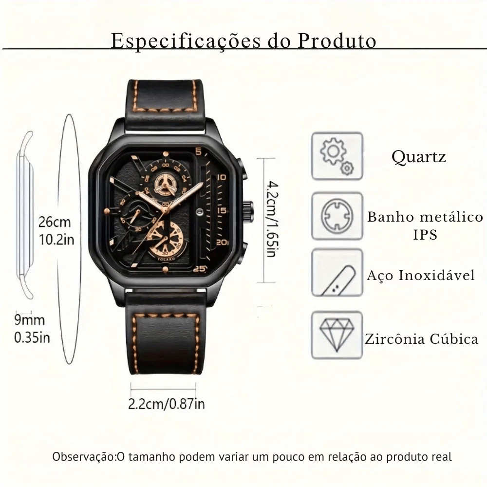 • Design elegante:O relógio apresenta um design elegante e moderno que complementa qualquer roupa, tornando-o perfeito para homens preocupados com a moda.